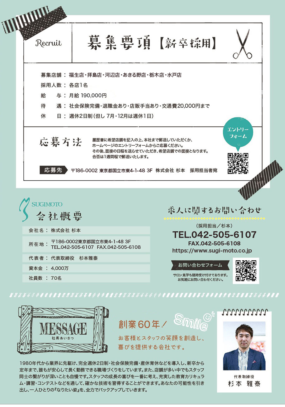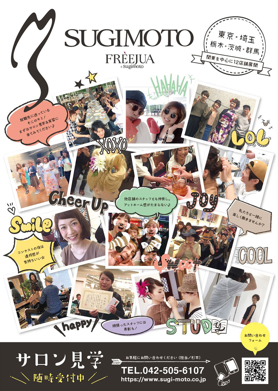 東京 埼玉 栃木 茨城など関東を中心に展開しているヘアサロン SUGIMOTO(スギモト)